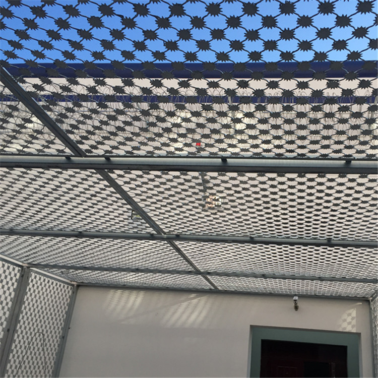 6、蛇腹型刀刺網由銳利尖角刀片和芯線組成,刀刺、刀型整齊、刀片銳利、排列均勻致密、連接牢固。