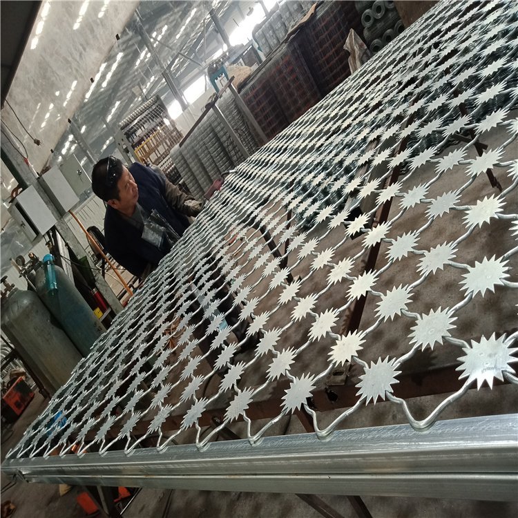 戒毒所鋼網墻具有堅固耐用、美觀大方、刀鋒銳利、防攀爬、抗強風、抗沖擊、抗剪切、抗腐蝕等特點。戒毒所鋼網墻是非常重要的司法安全防護設施,又焊接鋼網加蛇腹形刀刺網組合而成。產品具有結構新穎、堅固緊密、網面平整、網孔均勻、刀鋒銳利、防攀爬、抗腐蝕強等特點。建設于戒毒所的內外墻地面及高墻之上,網墻內側或頂部加裝蛇腹形刀刺網,形成一道高不可攀、難以逾越的隔離屏障。配合高壓打擊電網、各種監控報警設備確保監獄安全萬無一失。