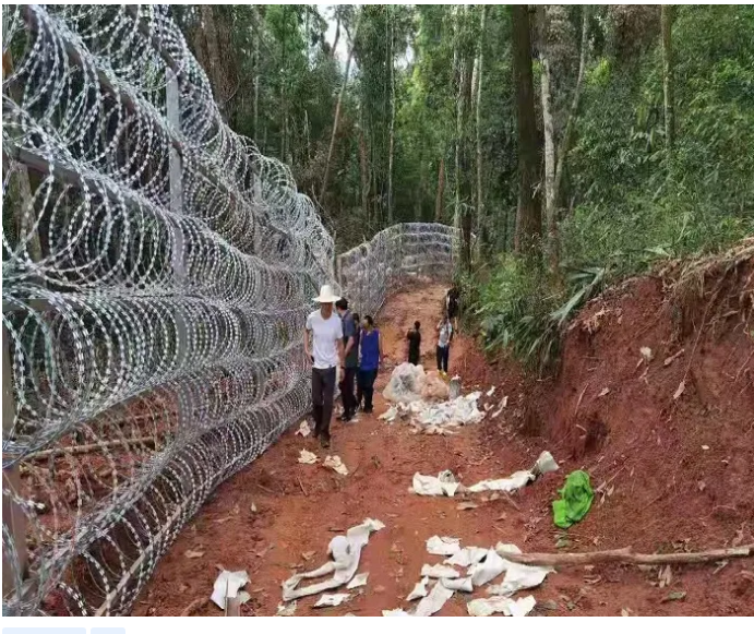 云南邊境防疫鋼鐵長(zhǎng)城采用蛇腹型刀片鐵絲網(wǎng),刀片剌網(wǎng)又名刮刀型刺絲,是一種發(fā)展起來(lái)的防護(hù)、隔離能力較強(qiáng)的新型防護(hù)網(wǎng)產(chǎn)品。鋒利的刀型刺由雙線扣裝后成蛇腹?fàn)?既美觀又讓人不寒而栗。起到了很好的阻嚇作用。同時(shí)該產(chǎn)品具有美觀、防阻效果好、施工便利等優(yōu)點(diǎn)。