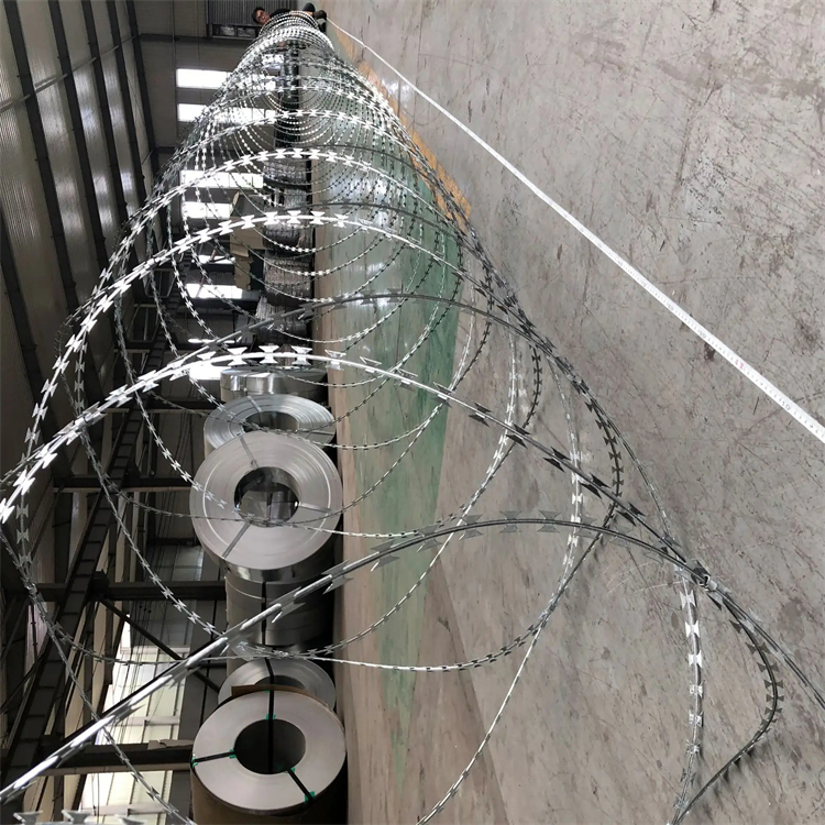 刀片刺繩一般用于監(jiān)獄做防護(hù)用,因刀片鋒利不易觸摸,起到一定的嚇阻作用那個(gè),刀片刺繩,用