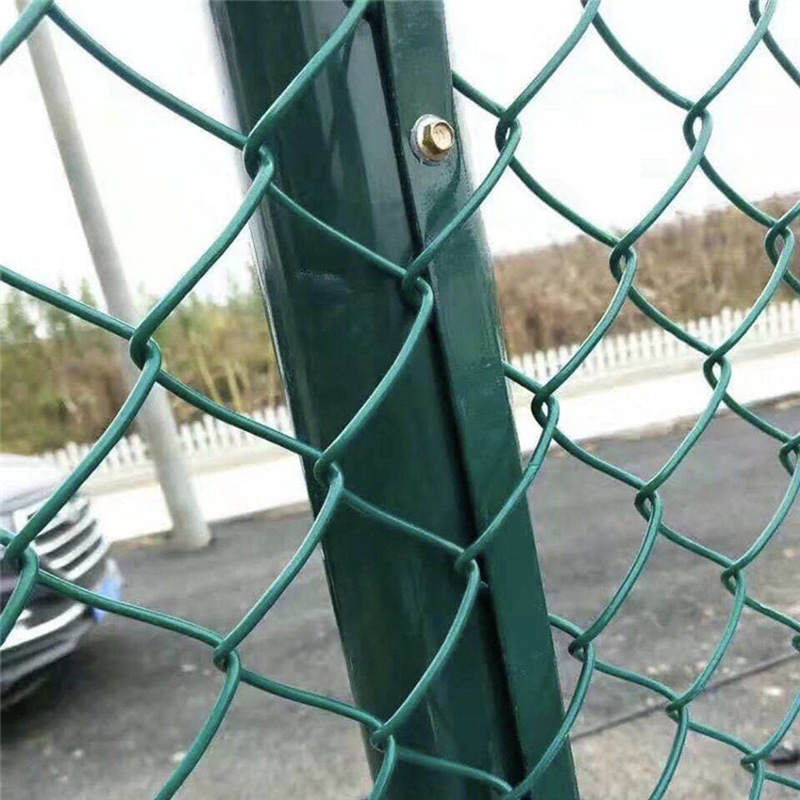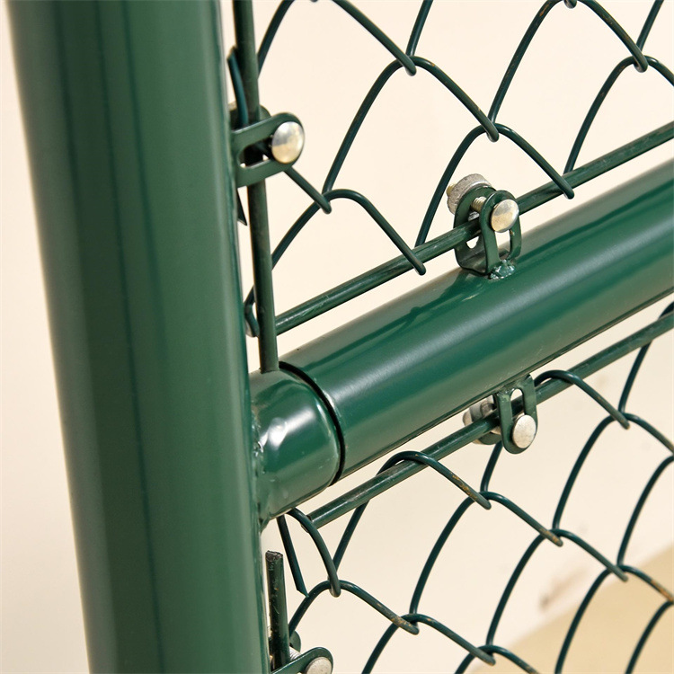 體育場圍網防腐處理包塑: 300度高溫塑化,使內層低碳鋼絲與表層塑料緊密粘貼,不易受空氣滲入鋼絲表面氧化而由