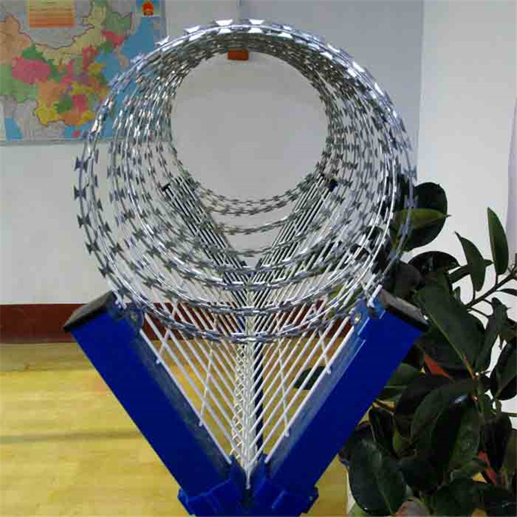 的低碳鋼絲、鍍鋅、涂塑、噴塑熱鍍鋅刺繩防腐形式:電鍍、熱鍍。 規(guī)格(安裝方法不同):1.(蛇腹式) 螺旋式刀片刺繩;2.直線型刀片刺繩;3.平板式刀片刺繩;4.刀片刺繩焊接網(wǎng):螺旋型、直線型、螺旋交叉型三種形式。熱鍍鋅刺繩特點(diǎn):1.具有美觀、經(jīng)濟(jì)實(shí)用、防阻效果好、施便利防護(hù)性能好2.具有可靠的保護(hù)功能造價(jià)低,主要是低碳鋼絲之間的擰接3.安裝方便快捷,只是簡單安裝就可該產(chǎn)品具有嚇阻效果好、美觀、施工便利,經(jīng)濟(jì)實(shí)用熱鍍鋅刺繩用途:用于許多國家的工礦企業(yè)、園林公寓、邊防哨所、軍事領(lǐng)域、廠區(qū),私人別墅,小區(qū)樓房一樓,工地,銀行,印鈔廠,軍事機(jī)地,平房,低墻等地的防盜,居民區(qū)各種管道防爬使用。