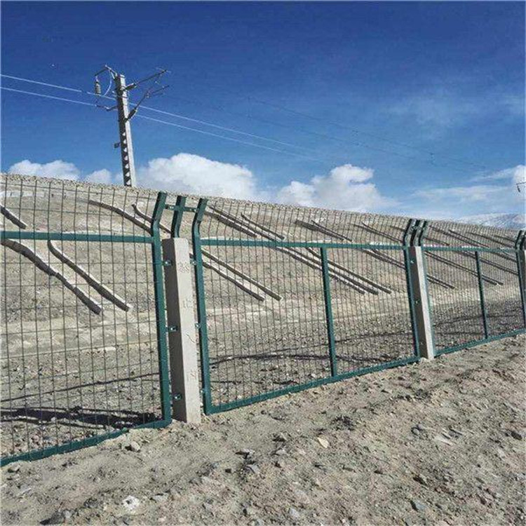 鐵路防護柵欄又叫鐵路隔離柵、鐵路防護網,鐵路防護柵欄是金屬網片防護柵欄的樣式之一,鐵路橋下防護柵欄是指高鐵橋下的隔離防護柵欄。主要作用橋墩安全,防止行人、車輛穿越,保障橋墩安全的作用,防護柵欄的結構是由金屬網片、鋼筋混凝土立柱組成。