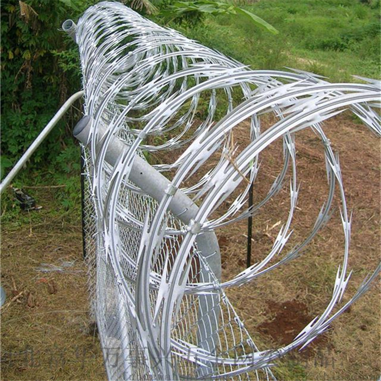 為了加強圍欄的高安全性,常有客戶要求在護欄的上面在一層刀片刺網來加強安全性能。刀片刺網具有美觀、經濟實用、防阻效果好、施工便利等優異特點,刀片刺網常見的表面處理有電鍍鋅,熱鍍鋅和噴塑處理。目前,刀片刺網已被廣泛應用于許多國家的工礦企業、園林公寓、邊防哨所、軍事領域、監獄、看守所、政府建筑物和其他國家的安全設施。