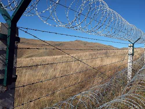 2012年*新《鐵路線路防護柵欄》[通線(2012)8001]通用參考圖出爐! 文獻規定:鐵路柵欄一改往日焊接鋼絲網柵欄、刺絲網柵欄等產品,改為防御性更強、壽命更長久的:鋼筋混凝土柵欄+0.5米高刺絲滾籠的防護柵欄。詳細內容如下: 鋼筋混凝土柵欄:詳見圖紙 0.5米高刺絲滾籠組成:刺絲刺繩+刀刺滾籠+鋼絲+立柱 圖集中:5、刺絲滾籠:(1)刺絲滾籠采用刀片刺繩繞圈后相鄰兩圈每隔120度用刺絲連接卡固定,張開后形成蛇腹網狀,閉合后刀片刺繩卷徑為50cm,張開后每交叉圈安裝間距20cm,直徑不小于45cm。(2)刀片刺繩由沖切鋼板采用機械軋在鋼絲上成型,刀刺寬度22mm,刀刃垂直間距15mm,刀刺縱向間距34mm,芯絲直徑為2.5mm。刀片厚度0.5mm的Q195鋼板網沖切制作。芯絲由HPB300 -6.5mm高線鋼絲冷拔加工。