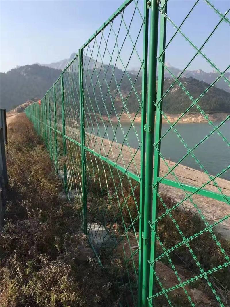 再次就是安裝護(hù)欄網(wǎng),然后在護(hù)欄網(wǎng)上面安裝刀片刺網(wǎng),刀片刺網(wǎng)安裝在護(hù)欄網(wǎng)上需要依靠Y型或v支架固定。