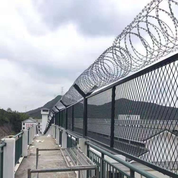 形、長方形,也可以焊接成菱形,也可以直接采用刀片刺繩焊接網(wǎng)或鋼板網(wǎng)材料的網(wǎng)片,還有造價較高的梅花刺片和358密紋網(wǎng),然后在網(wǎng)片的基礎上四周焊接邊框,防腐進行pvc浸塑或噴塑處理。頂端安裝刀片刺繩,刀片剌繩擁有鋒利的刀片,手不能握,可以阻止非法分子的攀爬,從而使鋼網(wǎng)墻從外形上邊可以起到震撼的作用。