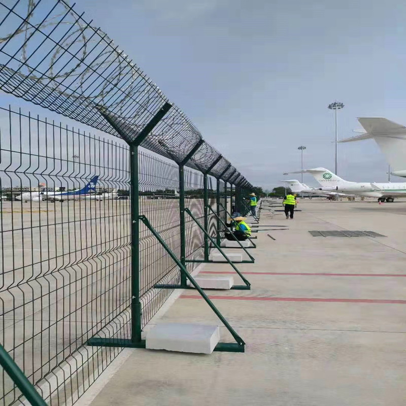 機(jī)場(chǎng)鋼筋網(wǎng)圍界是一種高安全隔離防護(hù)網(wǎng),一般由鋼筋焊接網(wǎng)、Y型防護(hù)立柱以及蛇腹式刀刺網(wǎng)等幾大主體組成,既有良好的通透性,又能起到強(qiáng)有力的安全隔離防護(hù)效果,同時(shí)美觀大方,與周圍環(huán)境以及任何景觀、設(shè)備都能完美相融合,因此機(jī)場(chǎng)鋼筋網(wǎng)圍界常被大量應(yīng)用于機(jī)場(chǎng)隔離,監(jiān)獄防護(hù)、軍事基地圈護(hù)等特殊地帶的安全防護(hù)。